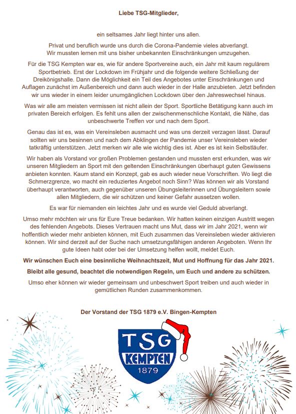 TSG Vereinsnachrichten 2020